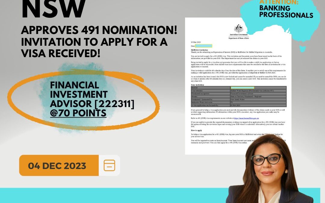 𝗔𝗨𝗦𝗧𝗥𝗔𝗟𝗜𝗔 𝗡𝗦𝗪 𝟰𝟵𝟭 𝗡𝗼𝗺𝗶𝗻𝗮𝘁𝗶𝗼𝗻 𝗥𝗲𝗰𝗲i𝘃𝗲𝗱 𝗙𝗼𝗿 𝗙𝗶𝗻𝗮𝗻𝗰𝗶𝗮𝗹 𝗜𝗻𝘃𝗲𝘀𝘁𝗺𝗲𝗻𝘁 𝗔𝗱𝘃𝗶𝘀𝗼𝗿[𝟮𝟮𝟮𝟯𝟭𝟭] @𝟳𝟬 𝗣𝗼𝗶𝗻𝘁𝘀.
