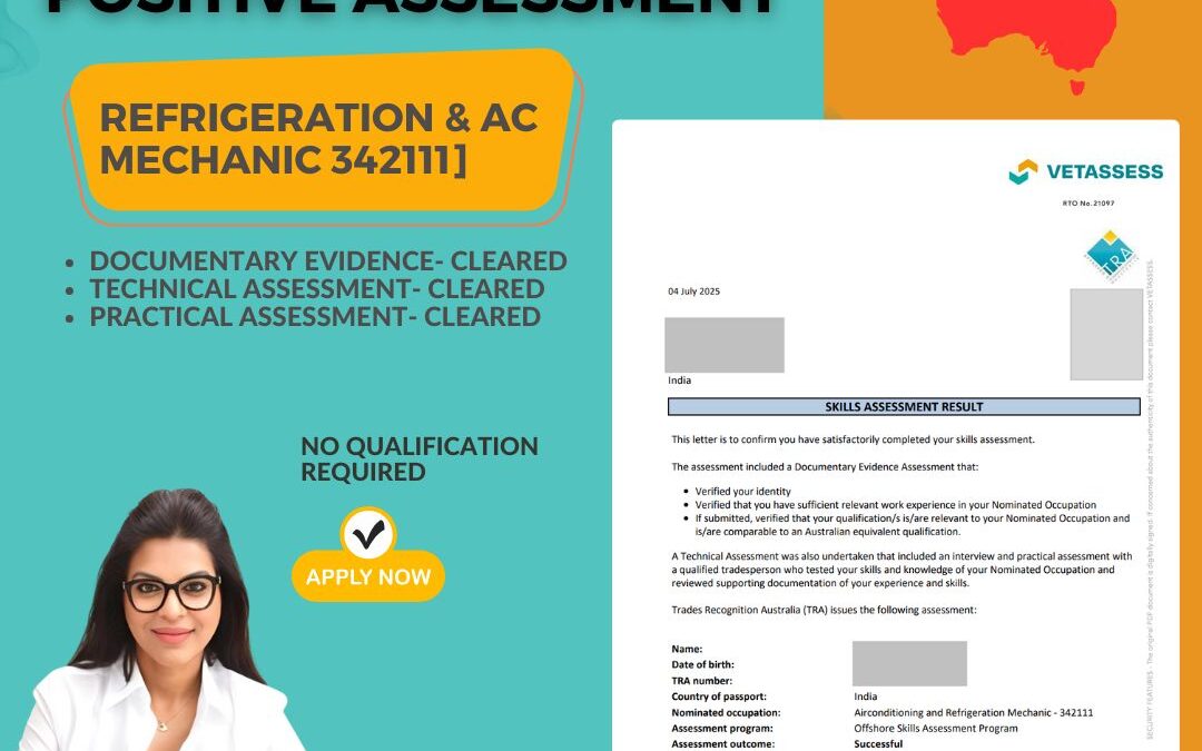 𝐀𝐮𝐬𝐭𝐫𝐚𝐥𝐢𝐚 𝐏𝐨𝐬𝐢𝐭𝐢𝐯𝐞 𝐒𝐤𝐢𝐥𝐥𝐬 𝐀𝐬𝐬𝐞𝐬𝐬𝐦𝐞𝐧𝐭 𝐑𝐞𝐜𝐞𝐢𝐯𝐞𝐝 𝐅𝐨𝐫 𝐑𝐞𝐟𝐫𝐢𝐠𝐞𝐫𝐚𝐭𝐢𝐨𝐧 & 𝐀𝐂 𝐌𝐞𝐜𝐡𝐚𝐧𝐢𝐜 [𝟑𝟒𝟐𝟏𝟏𝟏]