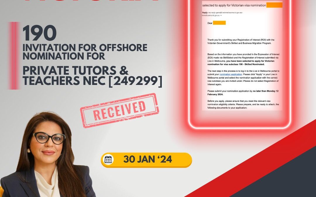 AUSTRALIA VICTORIA 190 Offshore Nomination To Apply For A Visa Received Today.