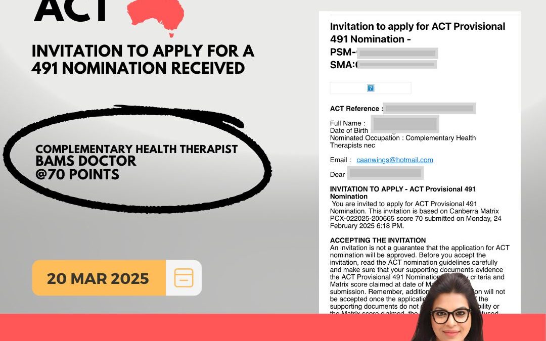 In an exciting development, Caanwings Consultants Pvt. Ltd., led by the forward-thinking Ms. Diamond Sodhi, has once again delivered results with the successful Subclass 491 visa invitation for a BAMS (Bachelor of Ayurvedic Medicine and Surgery) graduate. This accomplishment is a proud moment for both the client and the Caanwings team, reflecting their unwavering commitment to offering ethical, personalized, and result-driven immigration services.