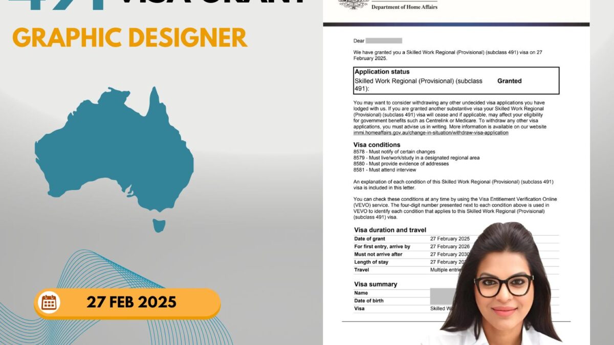 Securing a 491 visa for a Graphic Designer reflects the alignment of creative skills with Australia’s regional workforce needs, opening doors for long-term settlement and career growth.