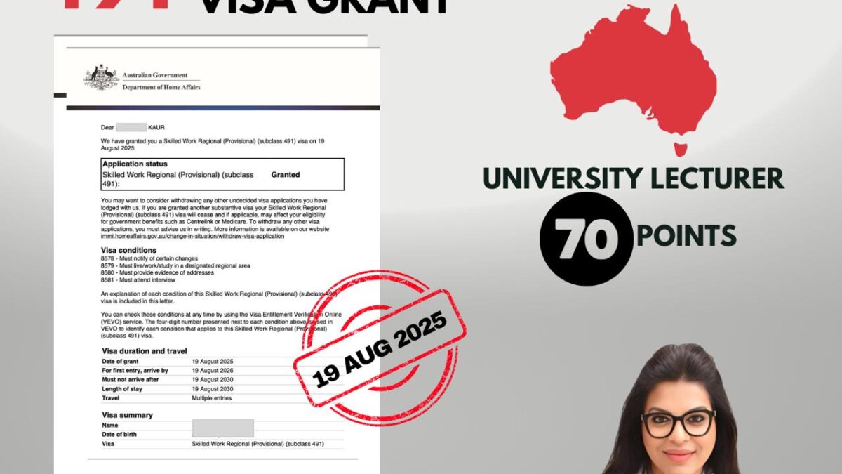 The successful Australia 491 Offshore Skilled Migrant Visa grant for a University Lecturer highlights both the opportunities available in Australia and the expertise of Caanwings Consultants in guiding applicants to success.