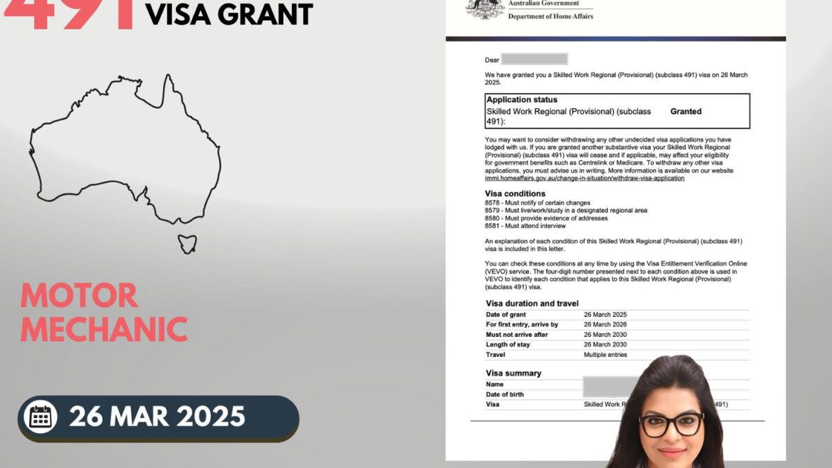 AUSTRALIA Skilled Visa Grant for Motor Mechanic