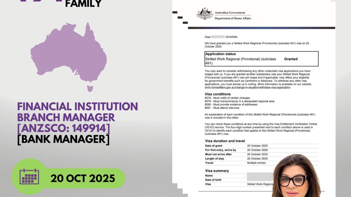 The Bank Manager (FIBM) occupation is in high demand across Australiaโs regional zones. Financial institutions rely heavily on experienced managers who can maintain compliance, customer satisfaction, and financial growth. With a positive skills assessment, strong English proficiency, and relevant experience, the candidate successfully met all the eligibility criteria for this category.