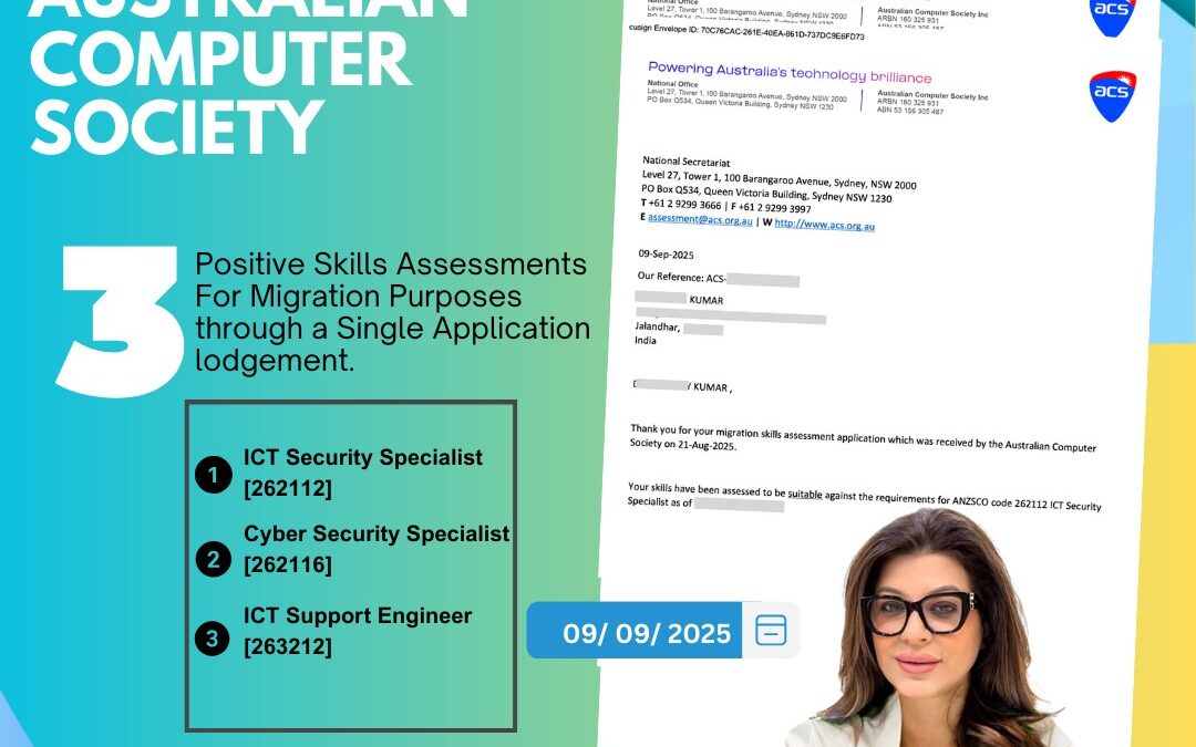 When it comes to migrating to Australia, securing a positive skills assessment is one of the most crucial steps. Recently, Caanwings Consultants Pvt. Ltd., guided by the expertise of Ms. Diamond Sodhi, achieved yet another remarkable success by obtaining 3 Positive Skills Assessments for a client through a single application lodgement.