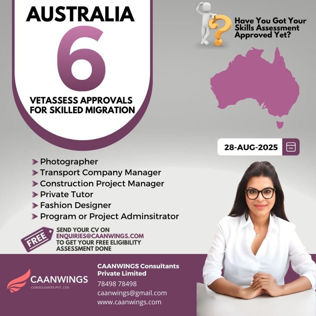 𝐀𝐮𝐬𝐭𝐫𝐚𝐥𝐢𝐚 𝟖 𝐏𝐨𝐬𝐢𝐭𝐢𝐯𝐞 𝐒𝐤𝐢𝐥𝐥𝐞𝐝 𝐀𝐬𝐬𝐞𝐬𝐬𝐦𝐞𝐧𝐭𝐬 𝐑𝐞𝐜𝐞𝐢𝐯𝐞𝐝 𝐎𝐧 𝟎𝟒 𝐒𝐞𝐩𝐭 𝟐𝟎𝟐𝟓 Caanwings Consultants Pvt. Ltd., under the dynamic leadership of Ms. […]