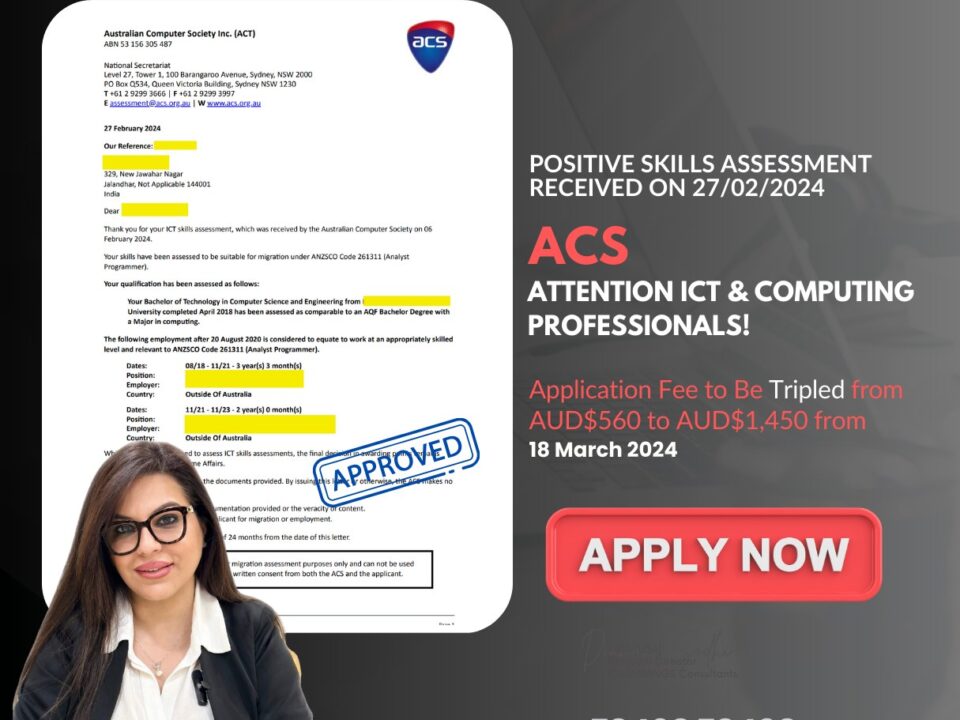 𝐀𝐔𝐒𝐓𝐑𝐀𝐋𝐈𝐀 𝐀𝐂𝐒 𝐏𝐎𝐒𝐈𝐓𝐈𝐕𝐄 𝐒𝐤𝐢𝐥𝐥𝐬 𝐀𝐬𝐬𝐞𝐬𝐬𝐦𝐞𝐧𝐭 𝐑𝐞𝐜𝐞𝐢𝐯𝐞𝐝 𝐎𝐧 𝟐𝟕-𝐅𝐞𝐛-𝟐𝟎𝟐𝟒. Application Fee to Be Tripled from 𝐀𝐔𝐃$𝟓𝟔𝟎 𝐭𝐨 𝐀𝐔𝐃$𝟏,𝟒𝟓𝟎 From 𝟏𝟖 𝐌𝐚𝐫𝐜𝐡 […]