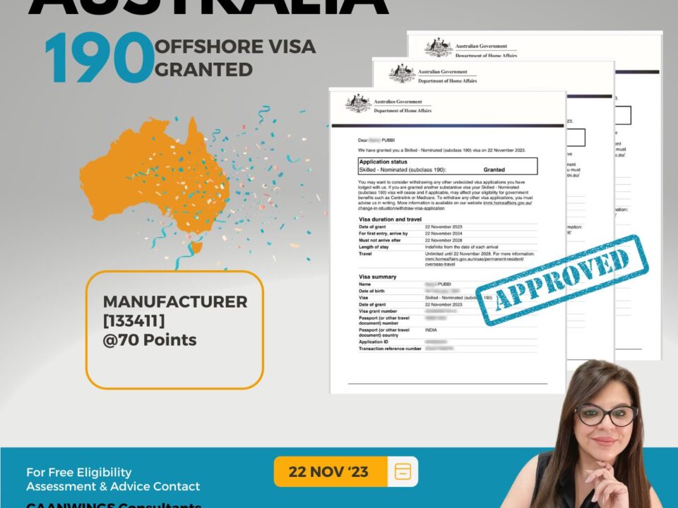 Congratulations to Mukul Pabbi & Family For AUSTRALIA Offshore 491 Migrant Visa Grant for 𝗠𝗮𝗻𝘂𝗳𝗮𝗰𝘁𝘂𝗿𝗲𝗿[𝟭𝟯𝟯𝟰𝟭𝟭]. TO CHECK Your Eligibility Share […]