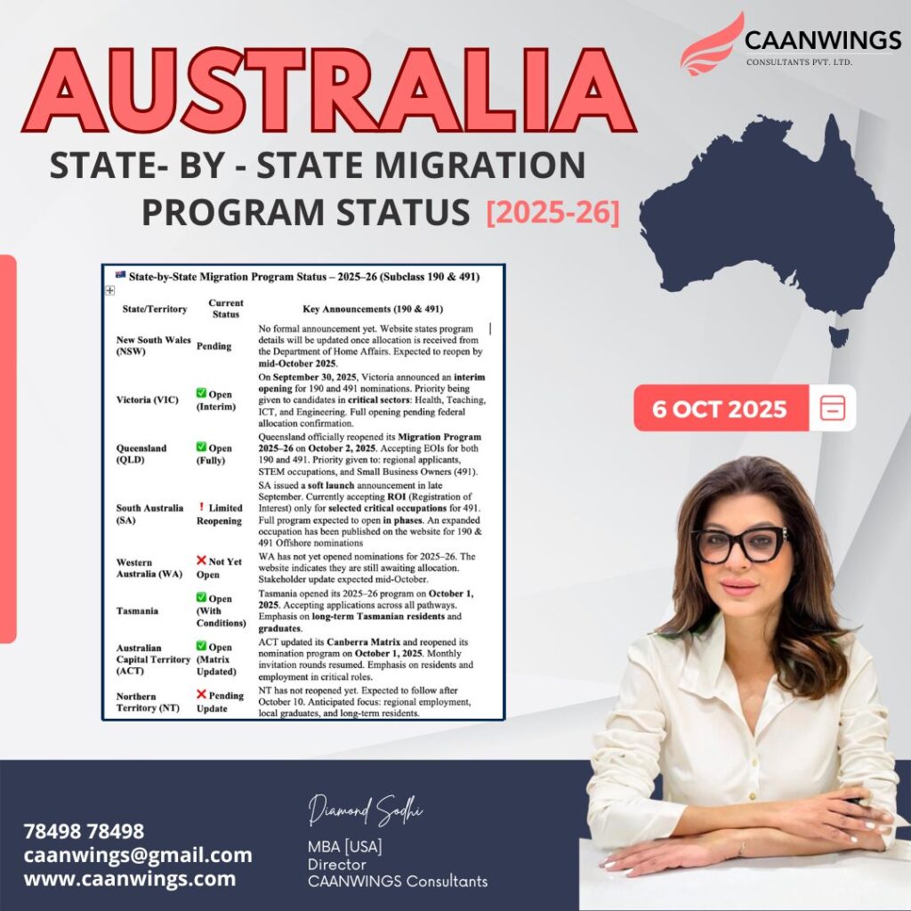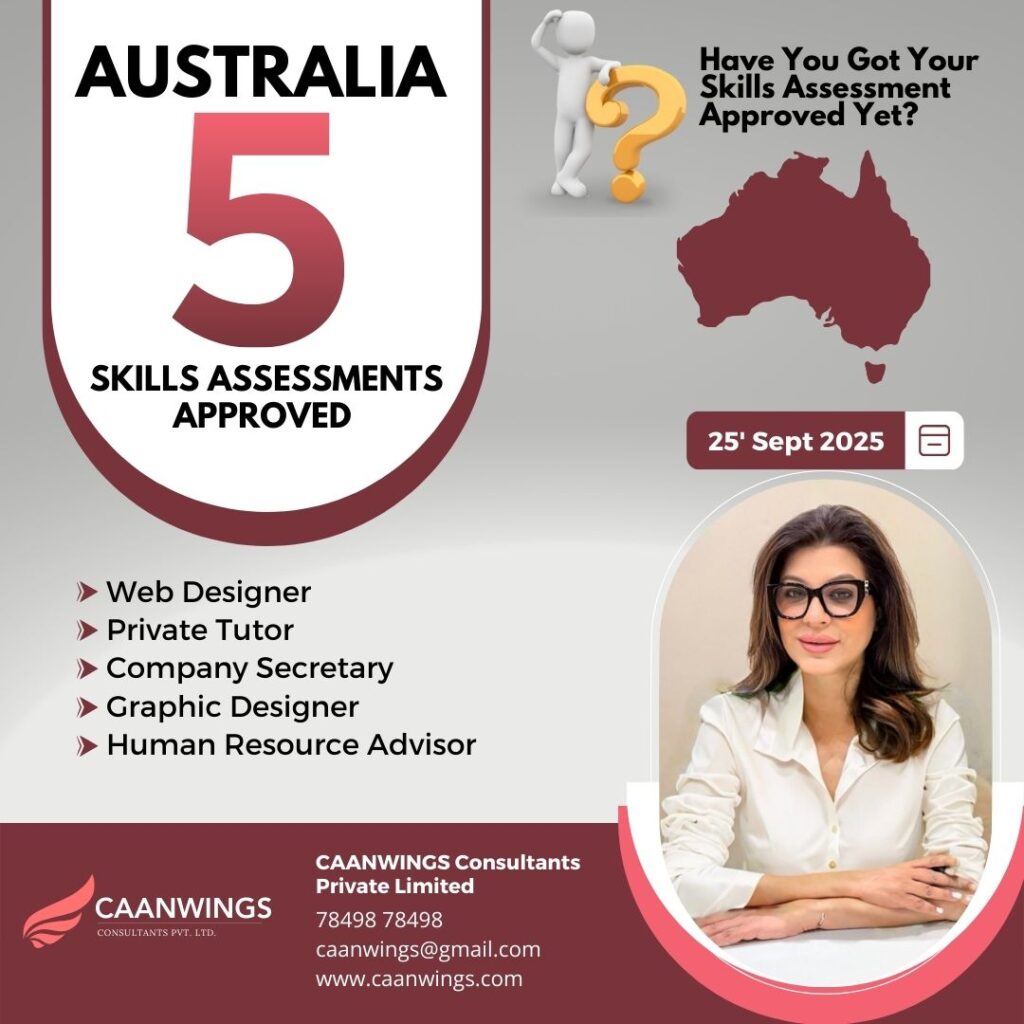 𝐀𝐔𝐒𝐓𝐑𝐀𝐋𝐈𝐀 𝟓 𝐏𝐨𝐬𝐢𝐭𝐢𝐯𝐞 𝐒𝐤𝐢𝐥𝐥𝐞𝐝 𝐀𝐬𝐬𝐞𝐬𝐬𝐦𝐞𝐧𝐭𝐬 𝐎𝐧 𝟏𝟗 𝐒𝐞𝐩𝐭𝐞𝐦𝐛𝐞𝐫 𝟐𝟎𝟐𝟓 Caanwings Consultants Pvt Ltd, directed by the experienced Ms. Diamond Sodhi, […]